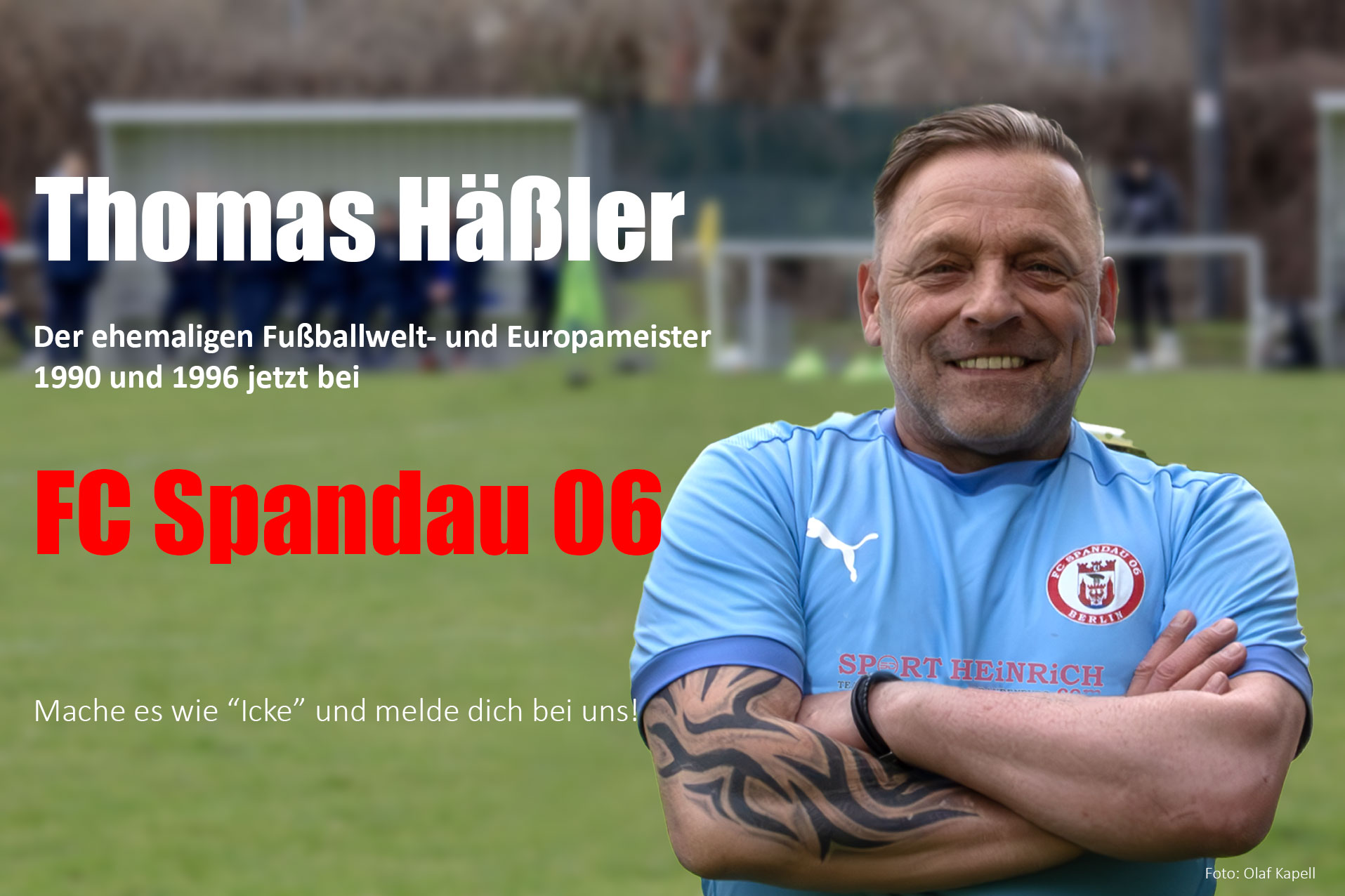 Wir suchen Trainer und Übungsleiter für alle Altersklassen der Jugend. Hast Du Lust eine Mannschaft beim FC Spandau 06 zu trainieren, dann mache es wie Thomas Häßler dem ehemaligen Fußballwelt- und Europameister, melde dich bei der Jugendleitung Bettina Schaper unter 0176/53953383!